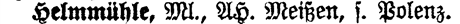 See Polenz - A See notation means the entry is dependent on another entry. In this case, Helmmühle is dependent on Polenz, which should be consulted for additional information.