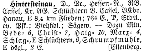 Prov Hess. -N. - The Province shows which Province or State the place is located in. Hintersteinau is located in Hessen-Nassau.