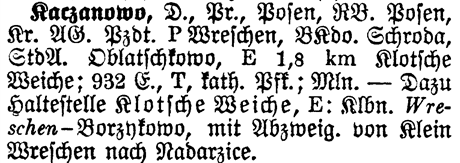 BKdo Schroda - The Bezirkskommando for Kaczanowo is in Schroda. The Bezirkskommando is the District Military Command. You can look in the BKdo to find military records.