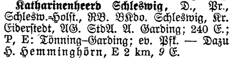 Prov Schlesw. -Holst. - The Province shows which Province or State the place is located in. Katharinenheerd is located in Schleswig-Holstein.