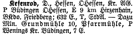 Kr Büdingen OHessen - The Kreis for Kefenrod is Büdingen OHessen. A Kreis is a government district (similar to a U.S. county).
