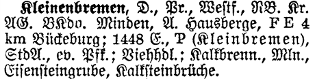 Prov Westf. - The Province shows which Province or State the place is located in. Kleinenbremen is located in Westfalen.