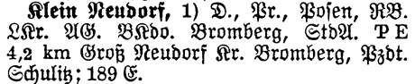 BKdo Bromberg - The Bezirkskommando for Klein Neudorf is in Bromberg. The Bezirkskommando is the District Military Command. You can look in the BKdo to find military records.