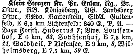 | A | Klein Steegen Kr. Pr. Eylau [self] |