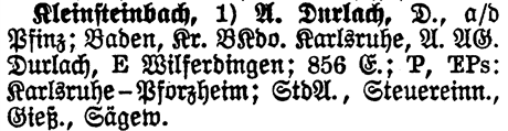 StdA | Kleinsteinbach 1) A. Durlach [self] |