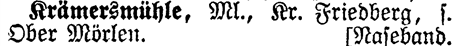 See Ober Mörlen - A See notation means the entry is dependent on another entry. In this case, Krämersmühle is dependent on Ober Mörlen, which should be consulted for additional information.