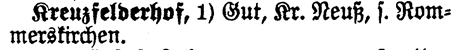 See Rommerskirchen - A See notation means the entry is dependent on another entry. In this case, Kreuzfelderhof is dependent on Rommerskirchen, which should be consulted for additional information.