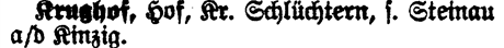 See Steinau a/d Kinzig - A See notation means the entry is dependent on another entry. In this case, Krughof is dependent on Steinau a/d Kinzig, which should be consulted for additional information.