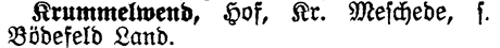 See Bödefeld Land - A See notation means the entry is dependent on another entry. In this case, Krummelwend is dependent on Bödefeld Land, which should be consulted for additional information.