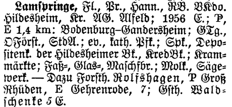 Prov Hann. - The Province shows which Province or State the place is located in. Lamspringe is located in Hannover.