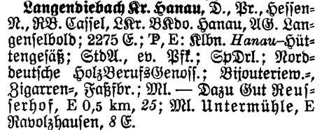 Prov Hess. -N. - The Province shows which Province or State the place is located in. Langendiebach is located in Hessen-Nassau.