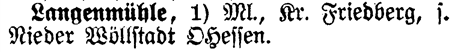 See Nieder Wöllstadt OHessen - A See notation means the entry is dependent on another entry. In this case, Langenmühle is dependent on Nieder Wöllstadt OHessen, which should be consulted for additional information.