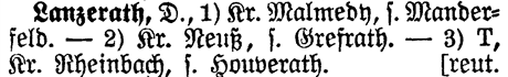 See Grefrath - A See notation means the entry is dependent on another entry. In this case, Lanzerath is dependent on Grefrath, which should be consulted for additional information.