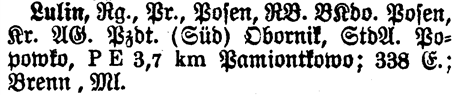 Kr Obornik - The Kreis for Lulin is Obornik. A Kreis is a government district (similar to a U.S. county).