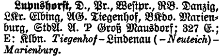 Prov Westpr. - The Province shows which Province or State the place is located in. Lupushorst is located in Westpreussen.