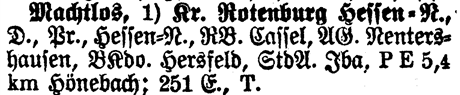 Prov Hess. -N. - The Province shows which Province or State the place is located in. Machtlos is located in Hessen-Nassau.