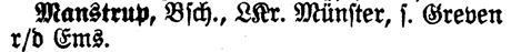 See Greven r/d Ems - A See notation means the entry is dependent on another entry. In this case, Manstrup is dependent on Greven r/d Ems, which should be consulted for additional information.