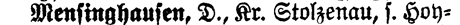 See Hoysinghausen - A See notation means the entry is dependent on another entry. In this case, Mensinghausen is dependent on Hoysinghausen, which should be consulted for additional information.