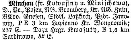 Prov Posen - The Province shows which Province or State the place is located in. Minchau is located in Posen.