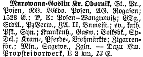 StdA Murowana-Goslin Kr. Obornik [self] - The Standesamt for Murowana-Goslin is in itself. The Standesamt is where the Civil Registration Office is located.