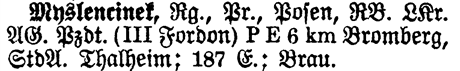 Prov Posen - The Province shows which Province or State the place is located in. Myslencinek is located in Posen.