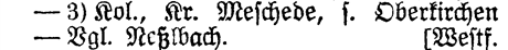 See Oberkirchen - A See notation means the entry is dependent on another entry. In this case, Nesselbach is dependent on Oberkirchen, which should be consulted for additional information.