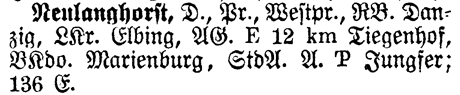 Prov Westpr. - The Province shows which Province or State the place is located in. Neulanghorst is located in Westpreussen.