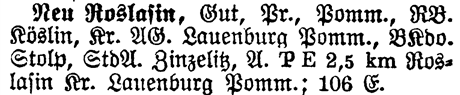 Neu Roslasin, Lauenburg, Köslin, Pommern, Preussen