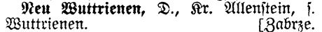 See Wuttrienen - A See notation means the entry is dependent on another entry. In this case, Neu Wuttrienen is dependent on Wuttrienen, which should be consulted for additional information.
