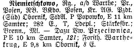 Kr Obornik - The Kreis for Niemietschkowo is Obornik. A Kreis is a government district (similar to a U.S. county).
