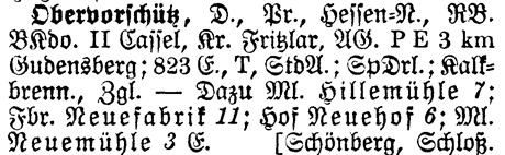 Prov Hess. -N. - The Province shows which Province or State the place is located in. Obervorschütz is located in Hessen-Nassau.
