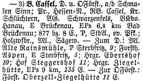 Entries where Oberzell 3) B. Cassel is referenced as See