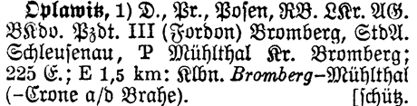 Prov Posen - The Province shows which Province or State the place is located in. Oplawitz is located in Posen.