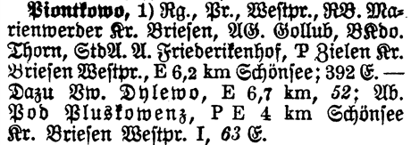 Prov Westpr. - The Province shows which Province or State the place is located in. Piontkowo is located in Westpreussen.