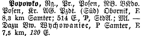 BKdo Posen - The Bezirkskommando for Popowko is in Posen. The Bezirkskommando is the District Military Command. You can look in the BKdo to find military records.