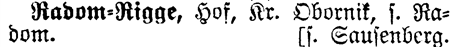 See Radom - A See notation means the entry is dependent on another entry. In this case, Radom-Rigge is dependent on Radom, which should be consulted for additional information.