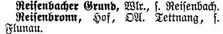 See Flunau - A See notation means the entry is dependent on another entry. In this case, Reisenbronn is dependent on Flunau, which should be consulted for additional information.