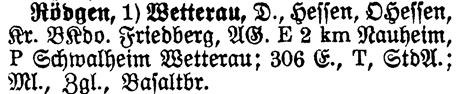 StdA Rödgen 1) Wetterau [self] - The Standesamt for Rödgen is in itself. The Standesamt is where the Civil Registration Office is located.