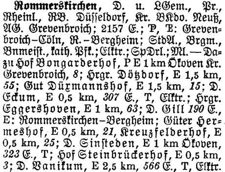 Prov Rheinl. - The Province shows which Province or State the place is located in. Rommerskirchen is located in Rheinland.