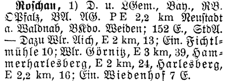 The list below are those places from the Meyers Gazetteer that are nearby to Roschau