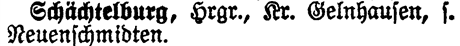 See Neuenschmidten - A See notation means the entry is dependent on another entry. In this case, Schächtelburg is dependent on Neuenschmidten, which should be consulted for additional information.