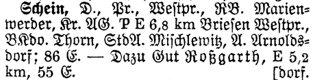 Prov Westpr. - The Province shows which Province or State the place is located in. Schein is located in Westpreussen.