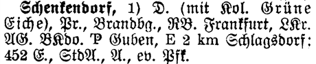 Prov Brandbg. - The Province shows which Province or State the place is located in. Schenkendorf is located in Brandenburg.