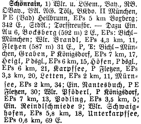 The list below are those places from the Meyers Gazetteer that are nearby to Schönrain
