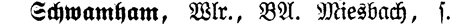 See Irschenberg - A See notation means the entry is dependent on another entry. In this case, Schwamham is dependent on Irschenberg, which should be consulted for additional information.