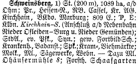 Prov Hess. -N. - The Province shows which Province or State the place is located in. Schweinsberg is located in Hessen-Nassau.