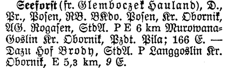 Prov Posen - The Province shows which Province or State the place is located in. Seeforst is located in Posen.
