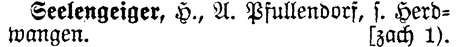 See Herdwangen. - A See notation means the entry is dependent on another entry. In this case, Seelengeiger is dependent on Herdwangen., which should be consulted for additional information.