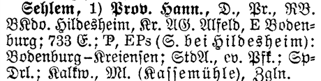 Prov Hann. - The Province shows which Province or State the place is located in. Sehlem is located in Hannover.