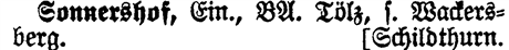 See Wackersberg - A See notation means the entry is dependent on another entry. In this case, Sonnershof is dependent on Wackersberg, which should be consulted for additional information.